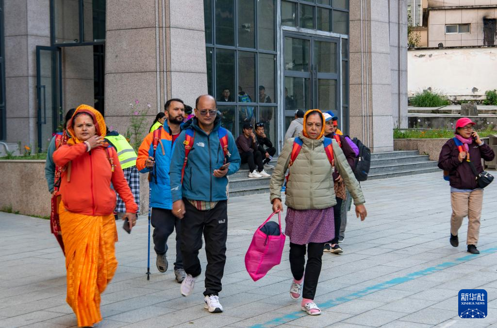 一隊外國遊客通過吉隆口岸從(cong) 我國出境到尼泊爾(9月11日攝)。新華社記者 薑帆 攝