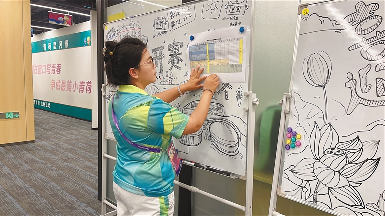 配圖:“小青荷”索朗德吉在張貼賽區賽程表。記者 萬(wan) 靖 攝
