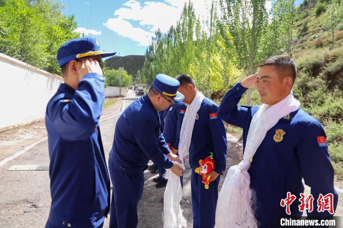 9月23日,參賽隊員載譽歸來,昌都市森林消防支隊熱烈歡迎參加比武指戰員載譽凱旋。“敬禮!”支隊指戰員用鮮花、哈達和熱烈的掌聲迎接凱旋歸來的勇士。