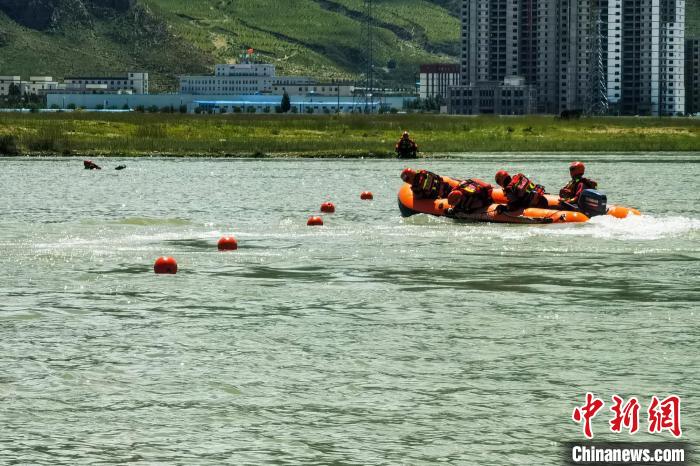 圖為(wei) 參賽隊員在水域救援比武現場。昌都市森林消防支隊 供圖