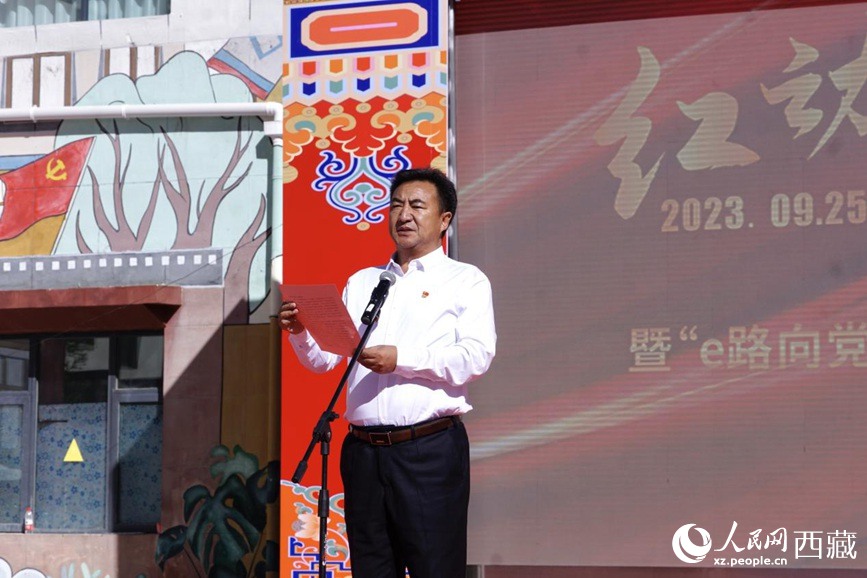 圖為(wei) 拉薩市人大常委會(hui) 黨(dang) 組成員、副主任、縣委書(shu) 記赤來塔吉致辭。邊子捷攝