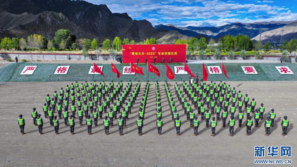 9月25日,“雪域尖兵”專(zhuan) 業(ye) 技能比武開幕式現場(無人機照片)。新華網發 陸文凱 攝