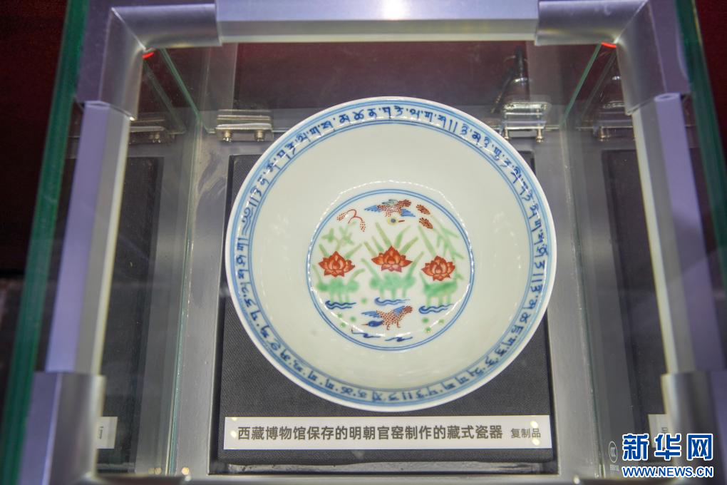 館內(nei) 陳列的西藏博物館保存的明朝官窯製作的藏式瓷器(複製品)。(9月27日攝)新華社記者 邵澤東(dong) 攝