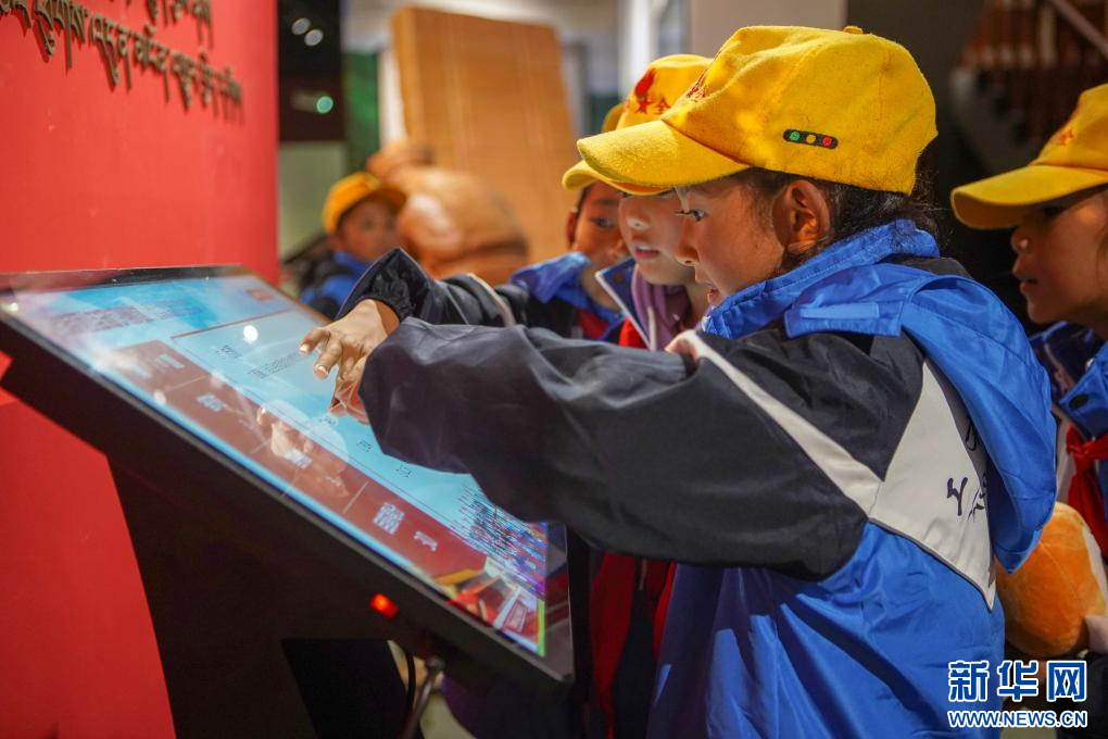 開館儀(yi) 式當天,當地小學學生圍在館內(nei) 民族團結知識測試機器前答題。(9月27日攝)新華社記者 黃智琪 攝