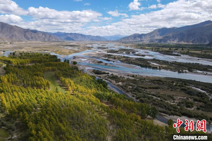 圖為(wei) 9月29日,拉薩河與(yu) 沿岸的“秋色”。江飛波 攝