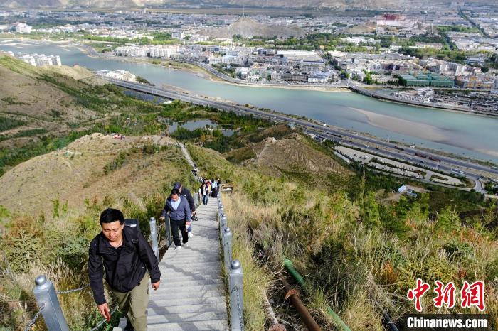 “山不見我、我自見山。”“不必告訴我山有多高路有多遠,我會(hui) 親(qin) 自來看。”“長路漫漫雲(yun) 燦燦,輕舟已過萬(wan) 重山。”……9月28日,中新社記者在拉薩南山公園半山腰看到遊客、市民的登山留言,現場也可以看到,長長的步道上滿是登山者,拾階往那山頂而去。
