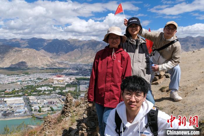 圖為(wei) 9月28日,4位登山者在登上拉薩南山山頂後與(yu) 遠處的布達拉宮合影留念。中新社記者 江飛波 攝