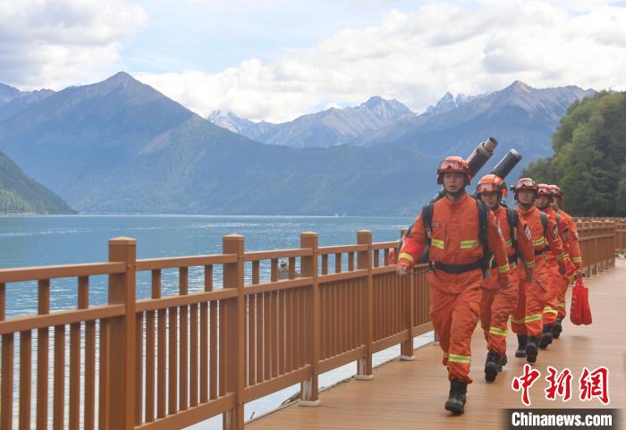 圖為(wei) 消防員正在景區巡邏。西繞拉翁 攝