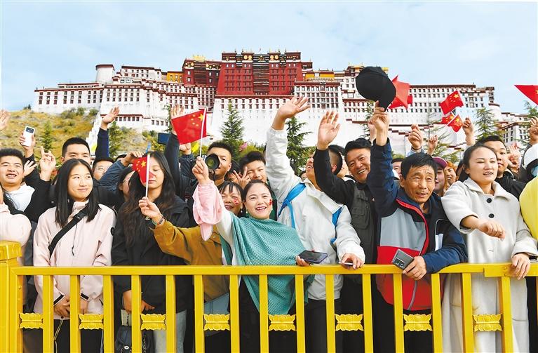 10月1日上午,西藏自治區慶祝中華人民共和國成立74周年“升國旗、唱國歌”儀(yi) 式在布達拉宮廣場舉(ju) 行。圖為(wei) 群眾(zhong) 在觀看升旗儀(yi) 式。記者 次仁平措 攝