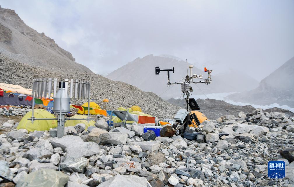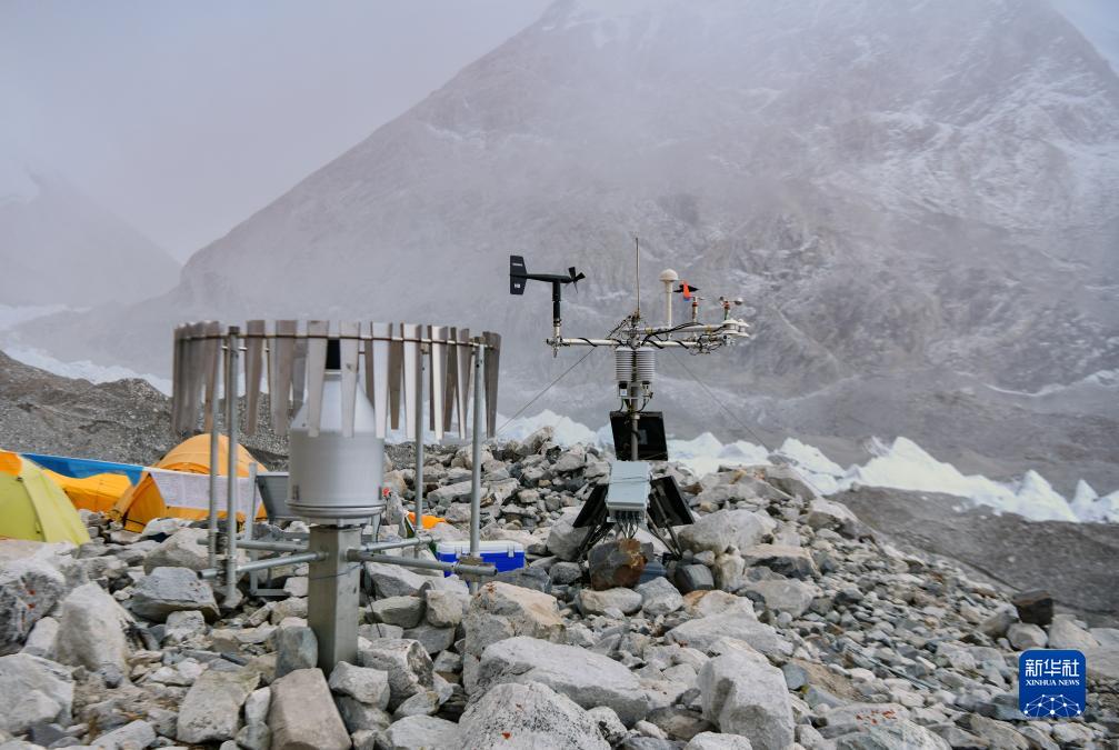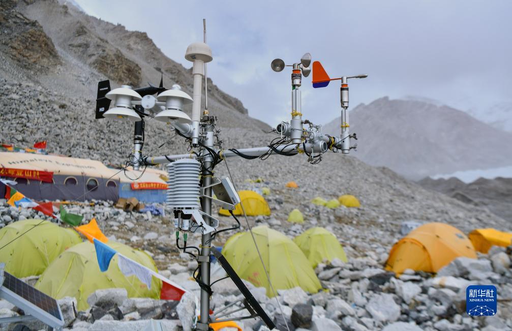 位於(yu) 海拔5700米卓奧友峰前進營地的自動氣象站(9月29日攝)。新華社記者 晉美多吉 攝