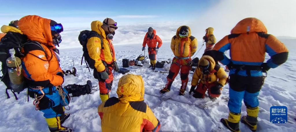 10月1日淩晨3時,科考隊員從(cong) 海拔7100米的卓奧友峰C2營地出發,曆經6個(ge) 多小時攀登,於(yu) 當日9時15分抵達海拔8201米的卓奧友峰峰頂,成功架設海拔8201米的自動氣象站。