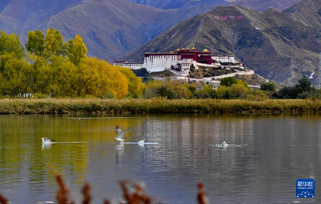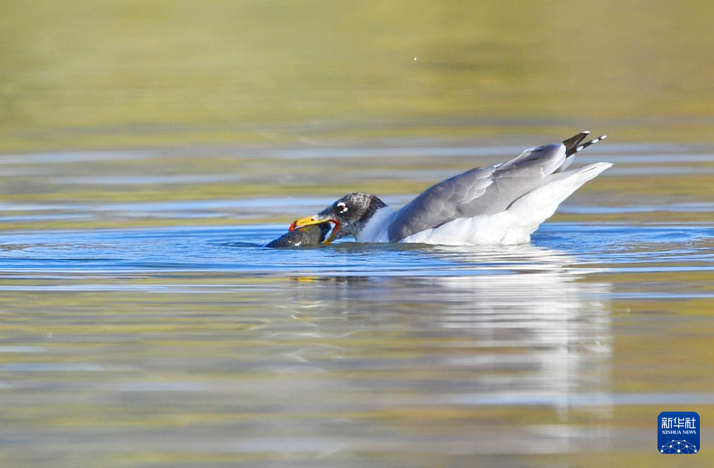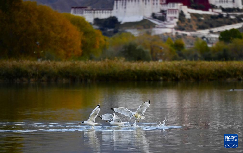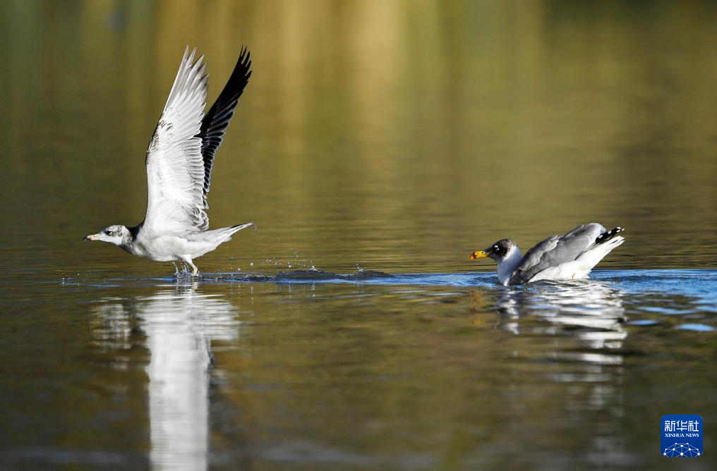 金秋十月,漁鷗在西藏拉薩市國家級自然保護區拉魯濕地裏嬉戲,惹人喜愛。