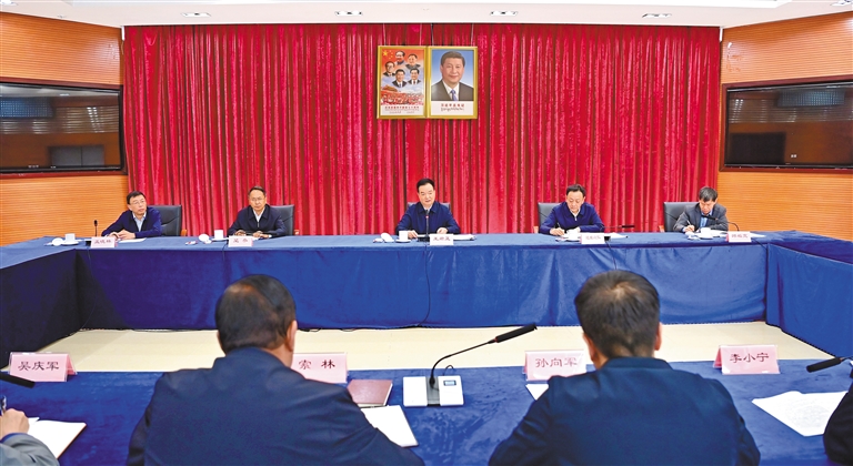 10月7日,自治區黨(dang) 委書(shu) 記王君正前往自治區社科院、社科聯調研。這是王君正聽取西藏哲學社會(hui) 科學工作開展情況匯報。 記者 旦增西旦 攝