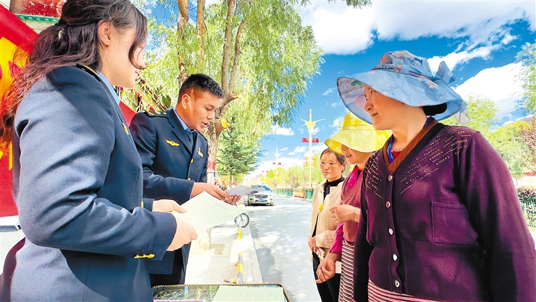 圖為(wei) 山南市瓊結縣市場監督管理局執法人員向群眾(zhong) 發放知識產(chan) 權相關(guan) 宣傳(chuan) 冊(ce) 。記者 白瑪澤旺 通訊員 倫(lun) 珠澤仁 攝