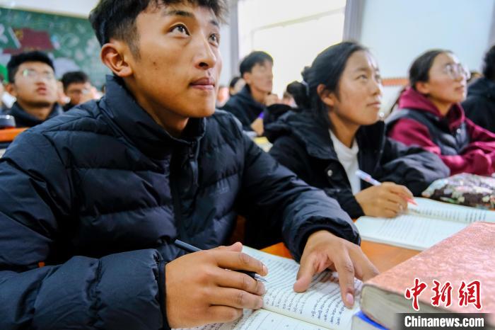 10月12日,西藏藏醫藥大學一課堂內(nei) ,學生們(men) 在學習(xi) 藏醫藥典籍《四部醫典》內(nei) 容。中新社記者 江飛波 攝