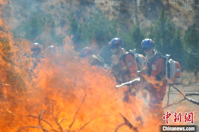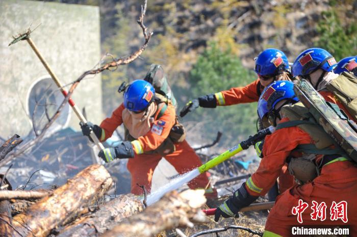 圖為(wei) 演練現場,森林消防進行滅火。拉薩市森林消防大隊 供圖