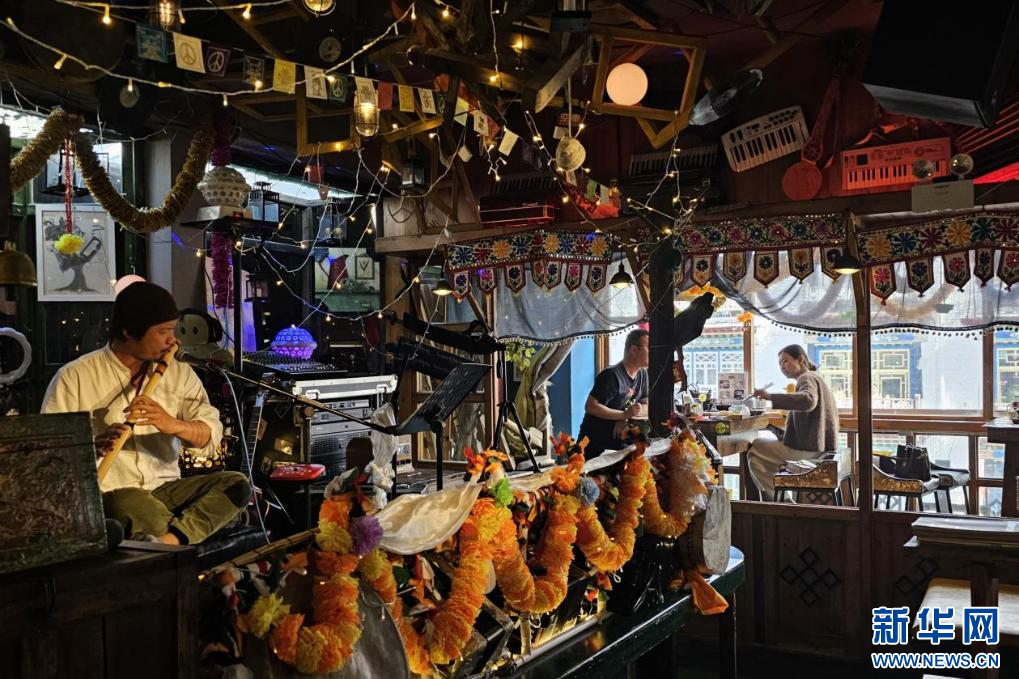 10月19日,遊客在拉薩古城區的一家餐廳。新華網 柑丹鴦琦 攝