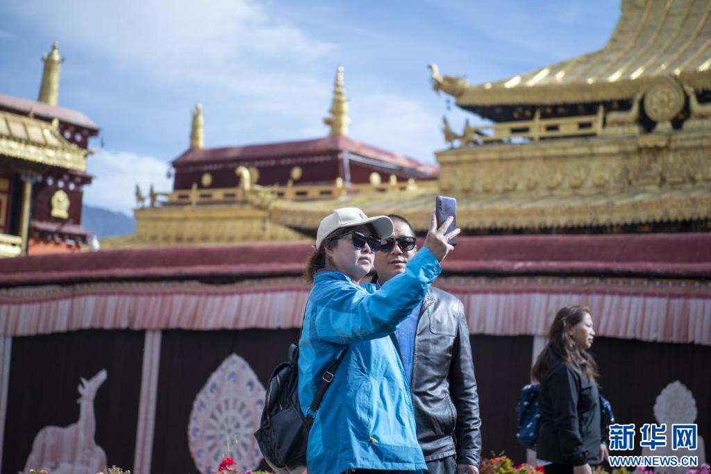 10月18日,遊客在大昭寺合影留念。新華網 司秦菱 攝