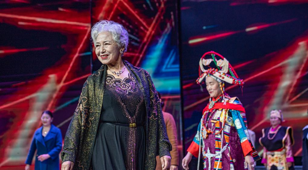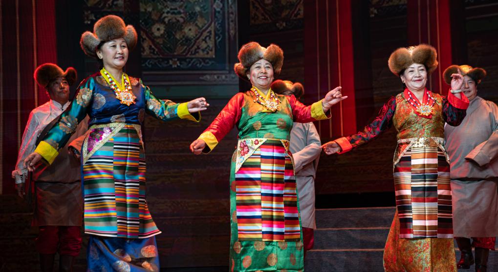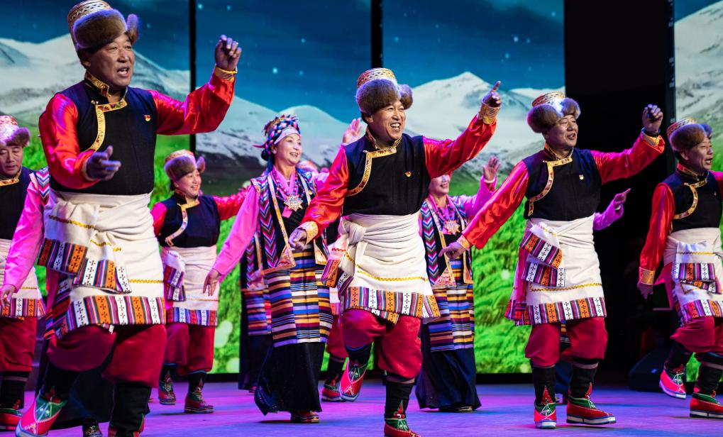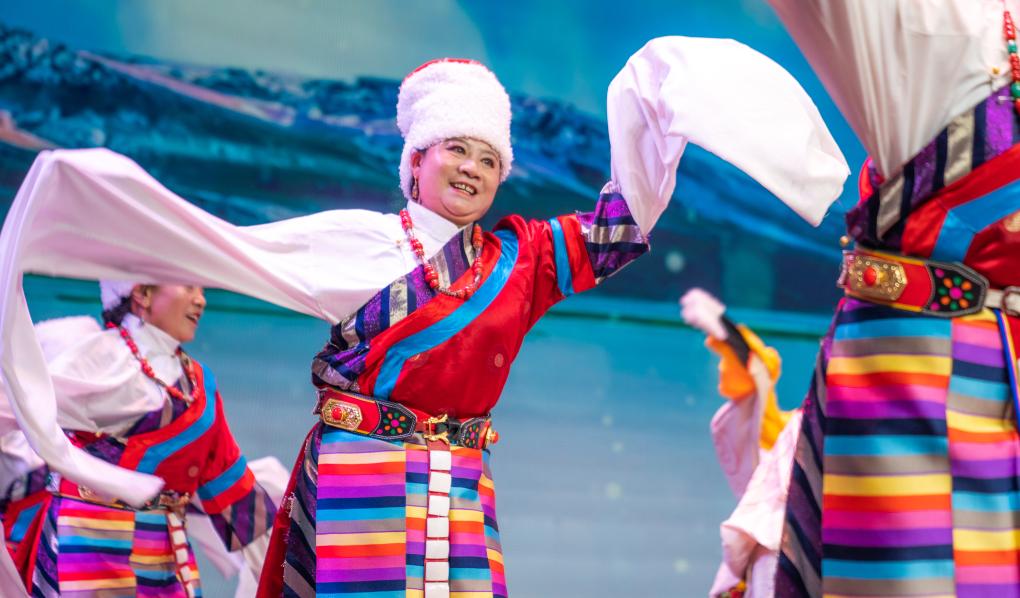 10月23日,老年文藝團的演員們(men) 表演舞蹈節目。新華社發(丁增尼達攝)