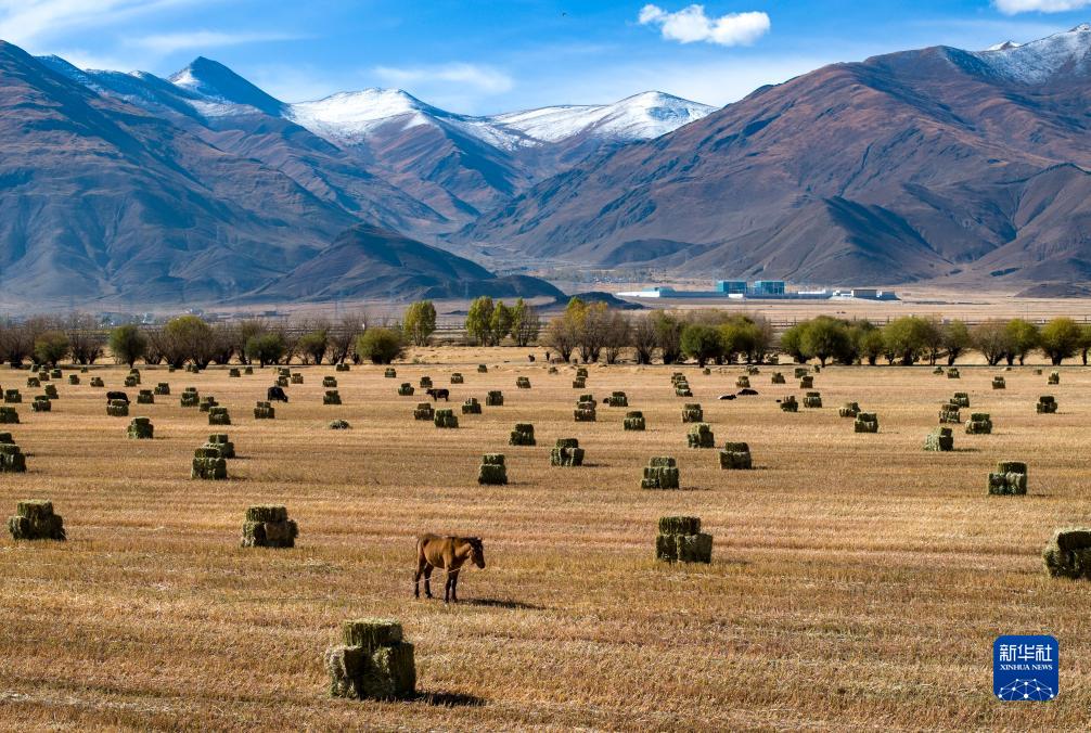 這是10月24日在拉薩市林周縣強嘎鄉(xiang) 曲嘎強村拍攝的已打包好的牧草(無人機照片)。新華社記者 薑帆 攝