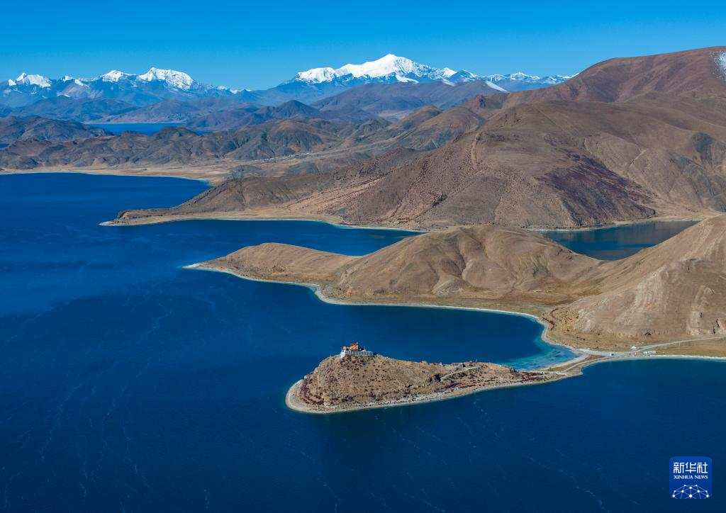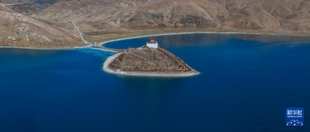 這是10月25日拍攝的羊卓雍錯和日托寺。新華社記者 薑帆 攝