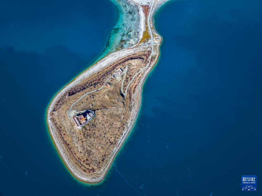 這是10月25日拍攝的羊卓雍錯和日托寺(無人機照片)。新華社記者 薑帆 攝