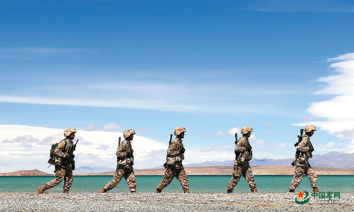 阿裏軍(jun) 分區某邊防連官兵前往一線點位巡邏執勤。