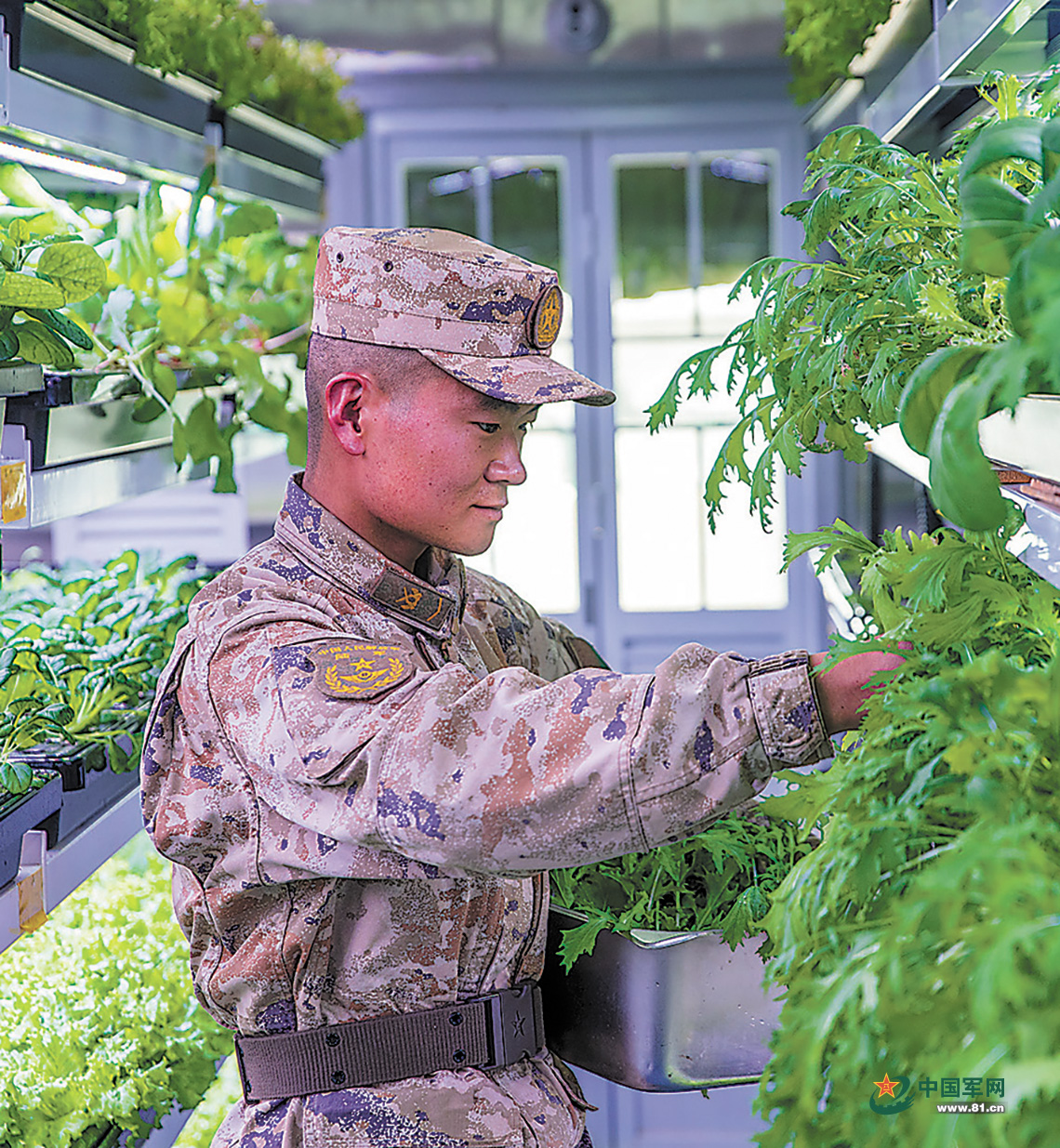 采用無土栽培技術的集裝箱“植物工廠”,讓邊防官兵吃上綠色蔬菜。