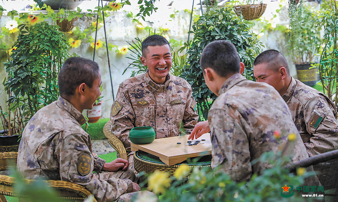 “陽光大棚”內(nei) 綠植遍布,環境清新,成為(wei) 官兵休閑娛樂(le) 的好去處。