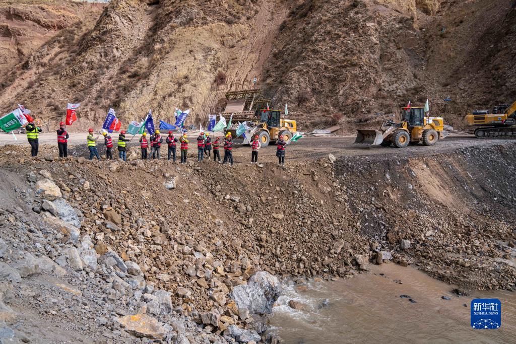 10月31日,施工人員在慶祝河道成功截流。新華社記者 孫非 攝