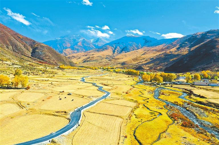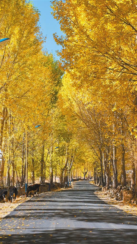 不僅(jin) 如此,不管是往北通向唐嘎鄉(xiang) 的路,還是往南通向章多鄉(xiang) 的路,或是通往各個(ge) 村莊的路,都在爭(zheng) 先恐後地訴說著金秋的美麗(li) 。道路兩(liang) 旁聳立著金黃色的楊樹,陽光透過樹葉,散落在道路上,一種靜謐而淡然的美,劃過車窗。