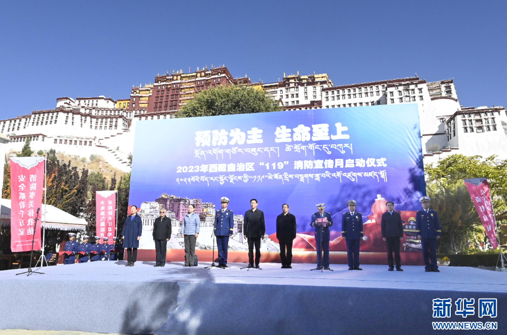 11月1日上午,2023年西藏自治區“119”消防宣傳(chuan) 月啟動儀(yi) 式在拉薩市布達拉宮雪城舉(ju) 行。