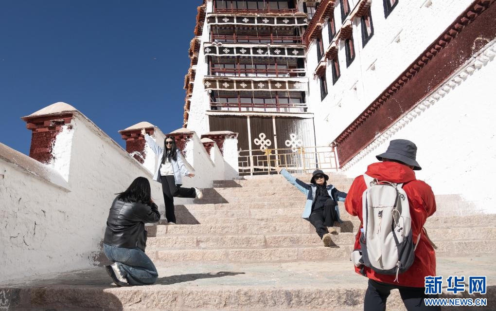 11月3日,遊客在布達拉宮拍照留念。 新華社發(丁增尼達 攝)
