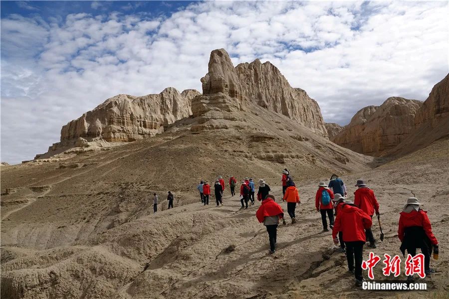 執行2022年夏季科考任務的中國第二次青藏高原綜合科學考察研究(青藏科考)“人類活動曆史及其影響”分隊在西藏阿裏格布賽魯遺址開展科學考察。孫自法 攝