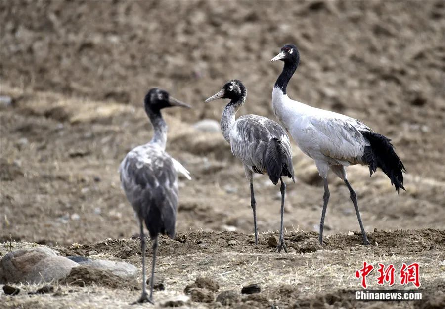 國家一級重點保護野生動物黑頸鶴在西藏拉薩楚布溝的農(nong) 田覓食。李林 攝
