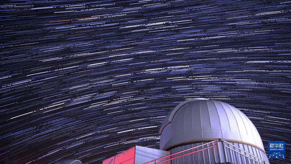 這是在阿裏暗夜公園拍攝的星軌(堆棧合成照片,11月4日攝)。 新華社記者 聶毅 攝