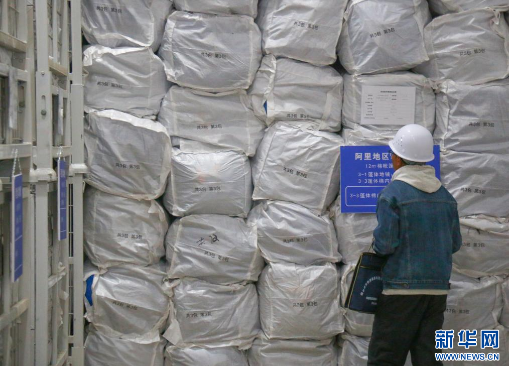 西藏阿裏地區應急救災物資儲(chu) 備庫一角。(11月5日攝)新華社記者 聶毅 攝