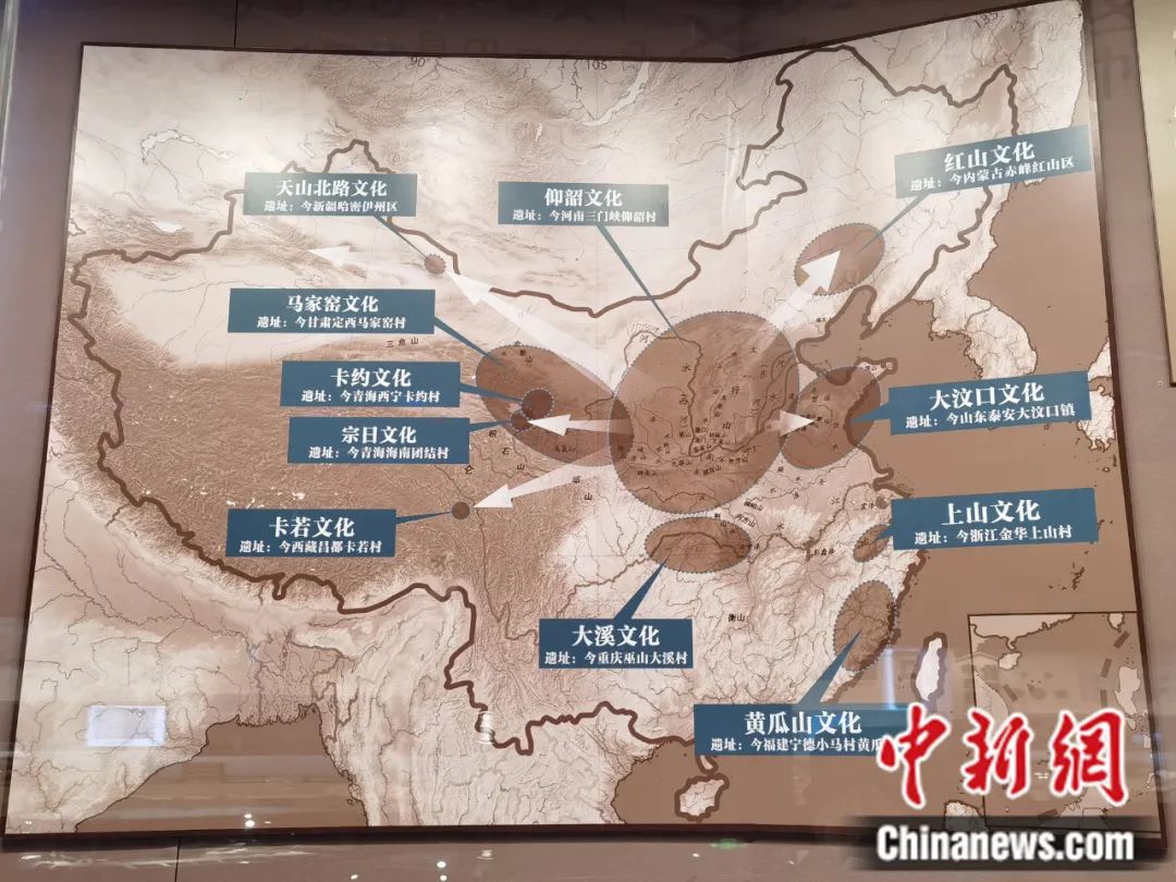 國家民委主辦的“鑄牢中華民族共同體(ti) 意識文物古籍展”正在民族文化宮展出。圖為(wei) 展覽中展出的新石器時代的馬家窯文化、齊家文化、辛店文化、寺窪文化、卡約文化、紅山文化的位置示意圖。民族文化宮供圖