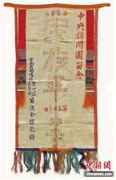 國家民委主辦的“鑄牢中華民族共同體(ti) 意識文物古籍展”正在民族文化宮展出。圖為(wei) 展覽中展出的新中國成立後雲(yun) 南省西疇縣第一區長箐鄉(xiang) 苗族全體(ti) 敬獻中央訪問團的錦旗。民族文化宮供圖
