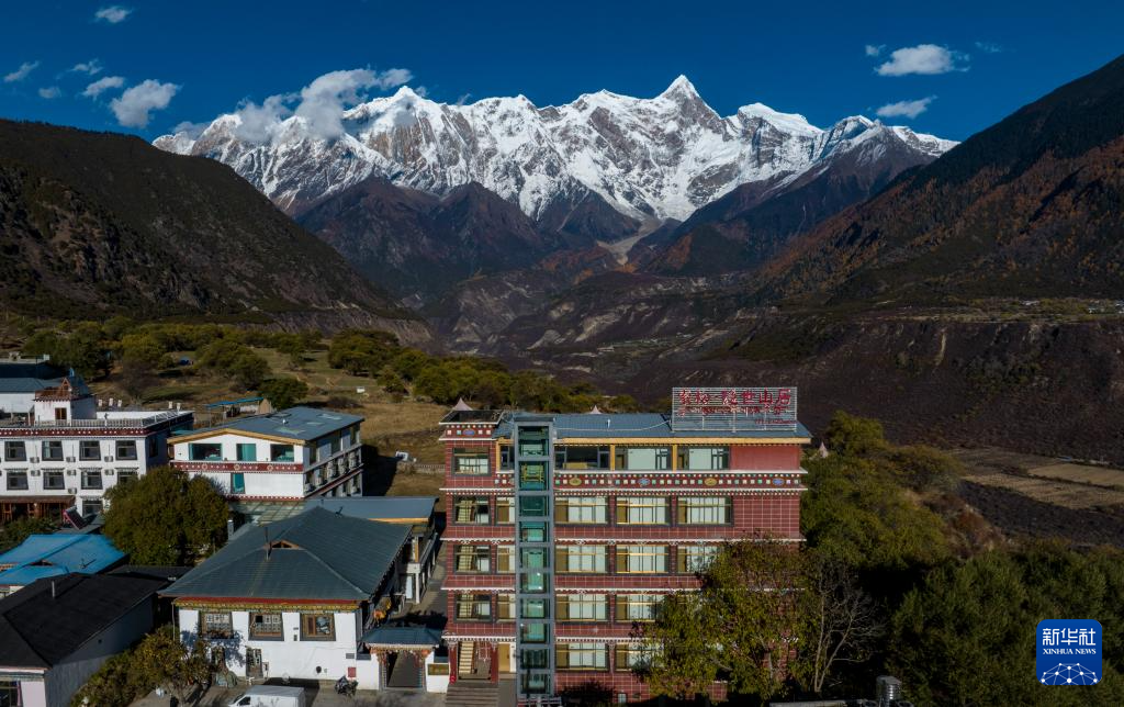 這是次仁頓珠和拉巴卓瑪開辦的民宿(無人機照片,11月13日攝)。新華社記者 薑帆 攝