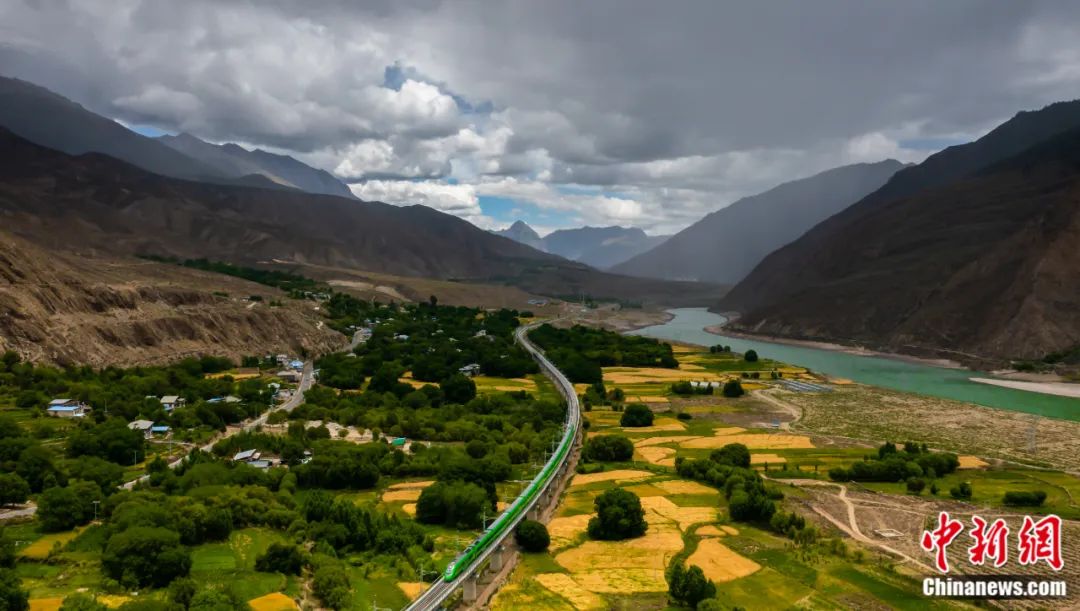 川藏鐵路拉林段高原複興(xing) 號通過西藏林芝朗縣堆巴磄。魏方合 攝