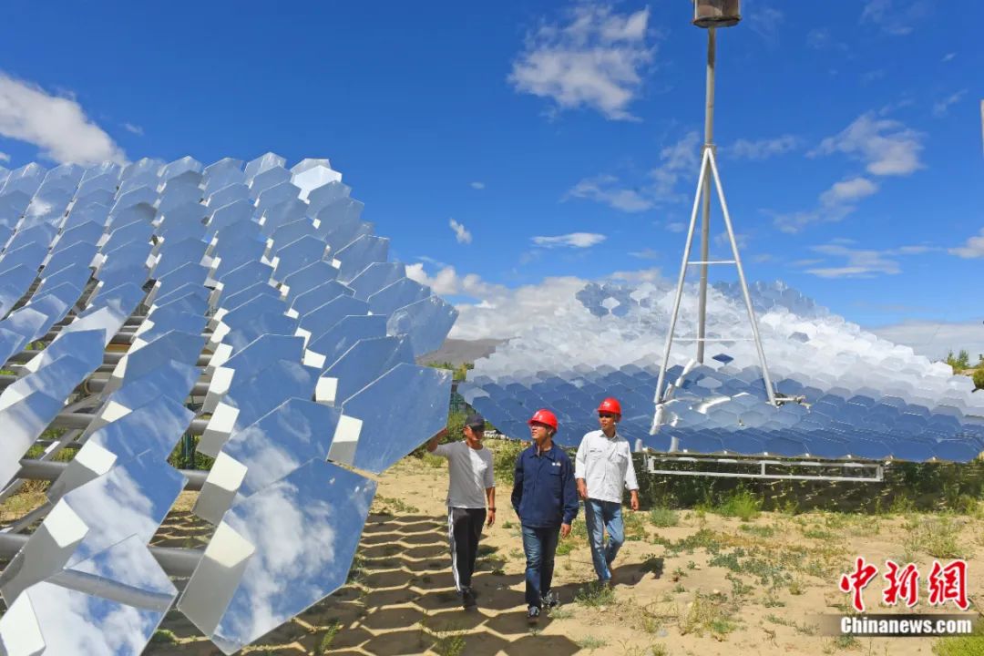 2020年6月,西藏山南市紮囊縣,工作人員對西藏首座多碟共焦塔式聚光集熱器的電力設施進行驗收。宋衛星 攝