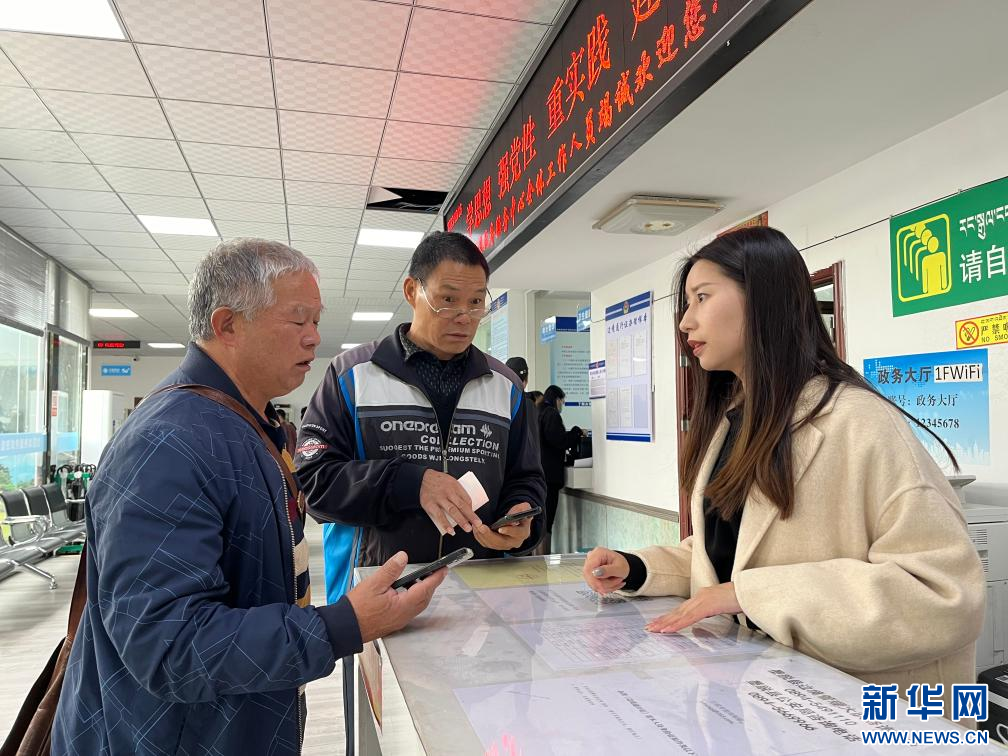 波密縣“無差別受理綜合窗口”工作人員正在為(wei) 遊客講解辦事流程(10月16日攝)。新華社發(熊思雅)