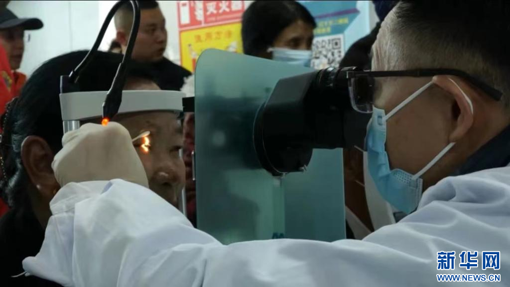 廣州市第一人民醫院與(yu) 深圳獅子會(hui) 眼科醫生為(wei) 波密群眾(zhong) 進行白內(nei) 障篩查(10月31日攝)。新華社發(王梓鳴 攝)