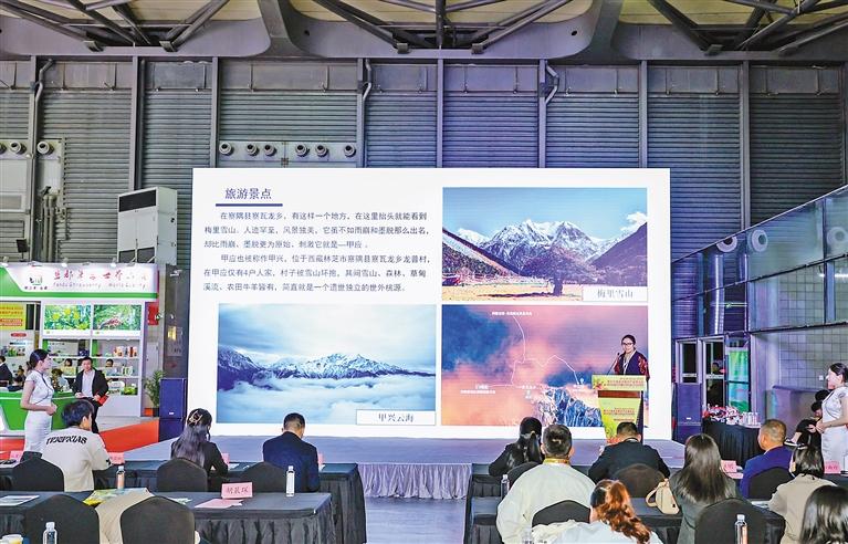 察隅縣農(nong) 業(ye) 農(nong) 村局工作人員推介察隅獼猴桃產(chan) 業(ye) 和茶葉產(chan) 業(ye) 。