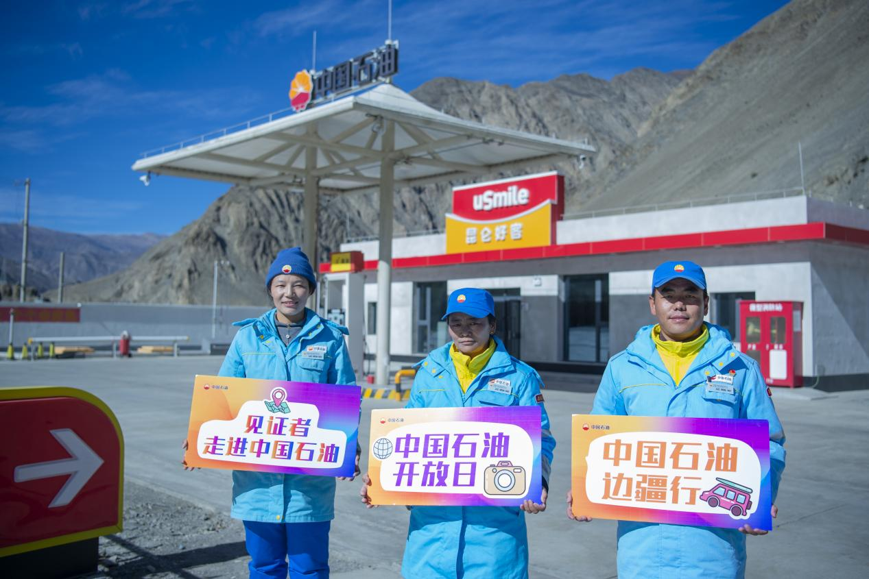 次仁央宗與(yu) 同事在加油站合影。新華網 旦增努布 攝
