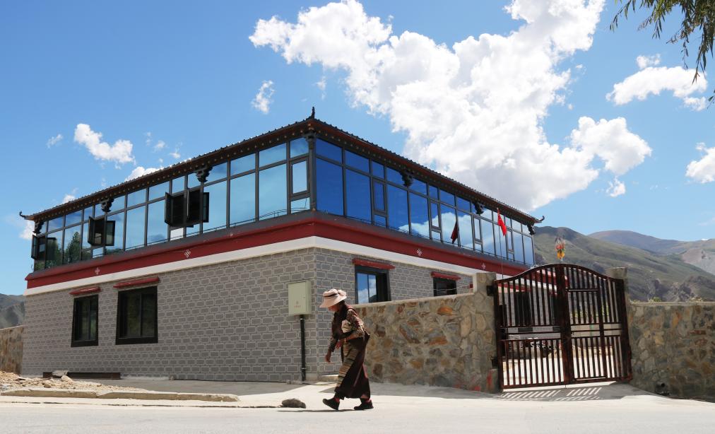 桑日縣桑日鎮塔木村的一位村民走過自家的新房(9月15日攝)。新華社記者 黃智琪 攝