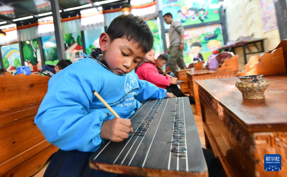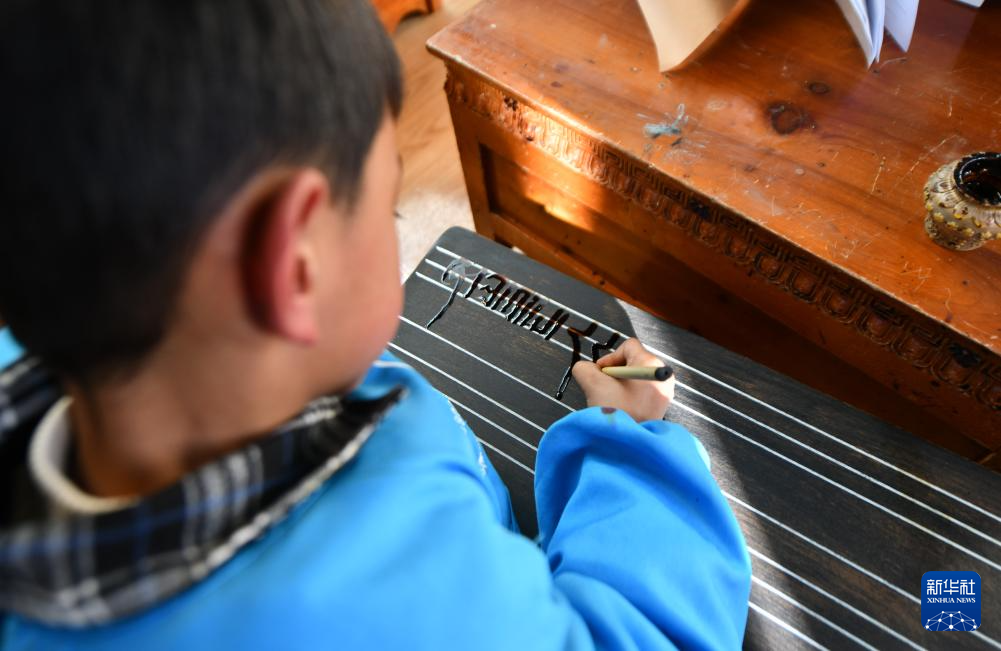 在拉薩的一家藏文書(shu) 法興(xing) 趣班裏,學生使用“牆星”練習(xi) 藏文書(shu) 法(12月2日攝)。新華社記者 春拉 攝