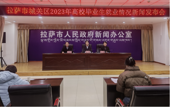 2023年12月6日,拉薩市政府新聞辦公室舉(ju) 行拉薩市城關(guan) 區2023年高校畢業(ye) 生就業(ye) 情況新聞發布會(hui) ,發布會(hui) 由拉薩市委宣傳(chuan) 部副部長何景平主持。邀請到拉薩市城關(guan) 區人民政府黨(dang) 組成員、副區長高雅,拉薩市城關(guan) 區區委組織部副部長,區人社局黨(dang) 組書(shu) 記、局長王靜向大家介紹拉薩市城關(guan) 區2023年高校畢業(ye) 生就業(ye) 情況,並回答記者提問。