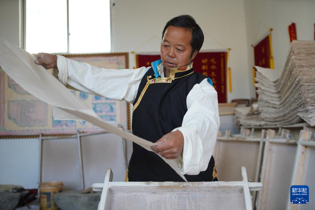 48歲的格桑旦增是“雪拉藏紙製作技藝”傳(chuan) 承人,也是西藏自治區拉薩市尼木縣雪拉藏紙農(nong) 牧民專(zhuan) 業(ye) 合作社負責人。他世代居住的尼木縣地處高原溫帶半幹旱季風氣候區,平均每天日照8.3小時。得天獨厚的自然條件使其自古以來便是影響較大的藏紙產(chan) 區之一。